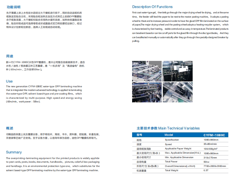 CYFM-1080C 全自動OPP覆膜機(水性/油性膠水及預(yù)涂膠膜)