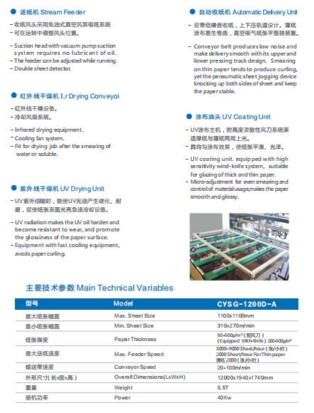首頁 >> CYSG-1200D-A 全自動UV厚薄紙三輥兩機頭全面上光機
